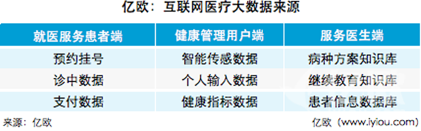 (1)互联网医疗就医服务患者端。此类平台致力于改善患者的就医体验,在就医全流程采集医疗大数据信息。从患者进入医院前的在线预约挂号开始,便将个人姓名、身份证号、电话等信息输入互联网医疗服务平台;随后在医生就医环节,病患的病历信息、医疗影像等信息也将传递到服务平台;看病结束后,患者买单结算的过程中,又将自费、医保报销等支付信息被添加到平台数据库里面,形成互联网医疗平台基础却最为庞大的大数据。