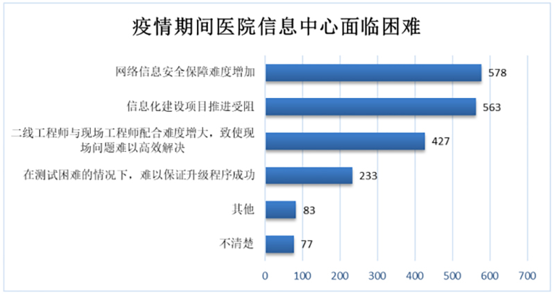 疫情爆发在春节假期,随着疫情发展,国家严格要求人员减少接触,进行隔离,因此信息中心在配合临床抗击疫情的同时,在自身工作上也面临很多困难。