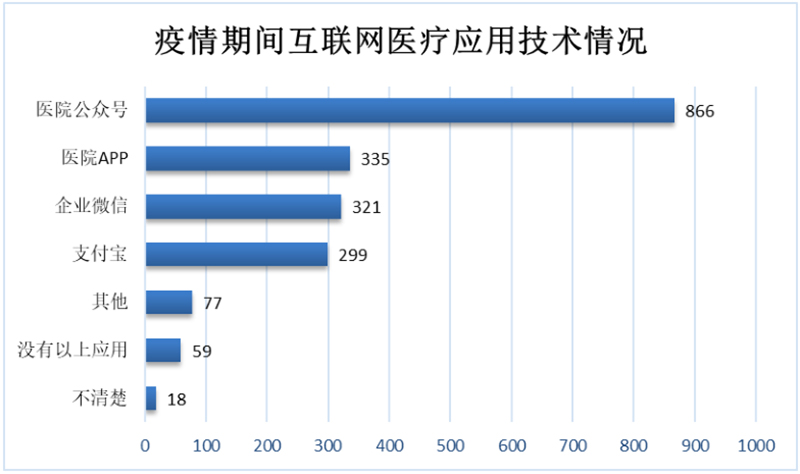 调查显示,为应对疫情,互联网咨询、远程会诊、预检分诊等信息化手段更受欢迎。同时,大数据、AI 等新兴技术获得了广泛应用。