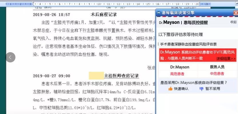 此外,基于人工智能的临床决策支持功能可以帮助医务人员进行自动评估,根据患者禁忌症提醒预防医嘱的开立……通过AI质量控制将质控关口前移,进而解决了医生VTE内涵质量的控制问题。
