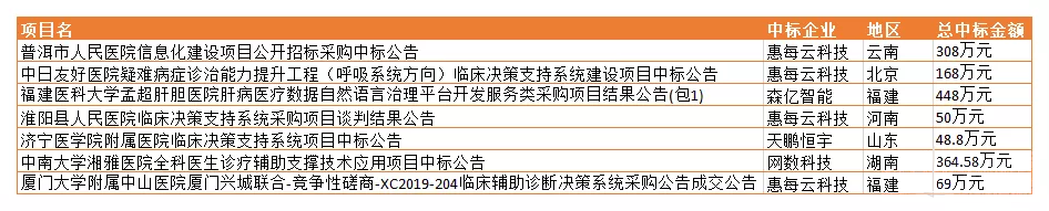 部分CDSS招标数据,数据来源于动脉橙数据库