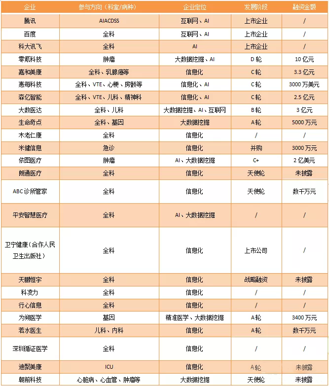 如果说前两项方向确定了CDSS发展的精度,那么第三项专科化则是拓宽了市场的宽度,也正因为此,诸多玩家正涌入其中。