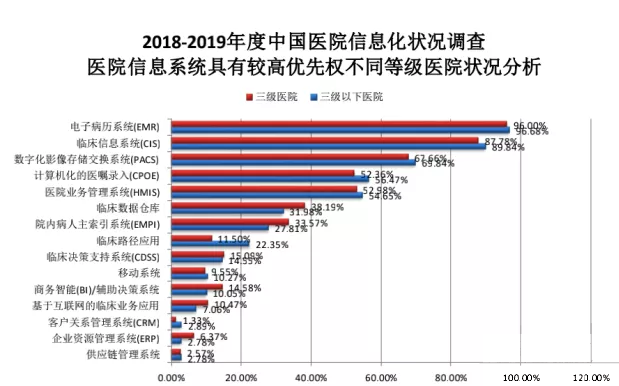 最后需要注意的是支付问题。对于专科CDSS而言,医院存在需求去购置这一设备,以提高对临床诊疗质量的把控,所以医院会成为专科CDSS的支付方。CHIMA2019年发布的《中国医院信息化状况调查》通过对医院抽样调查的方式显示了信息科对待CDSS的态度,无论是三甲医院还是三级以下医院,CDSS的优先权均处于靠前的位置。