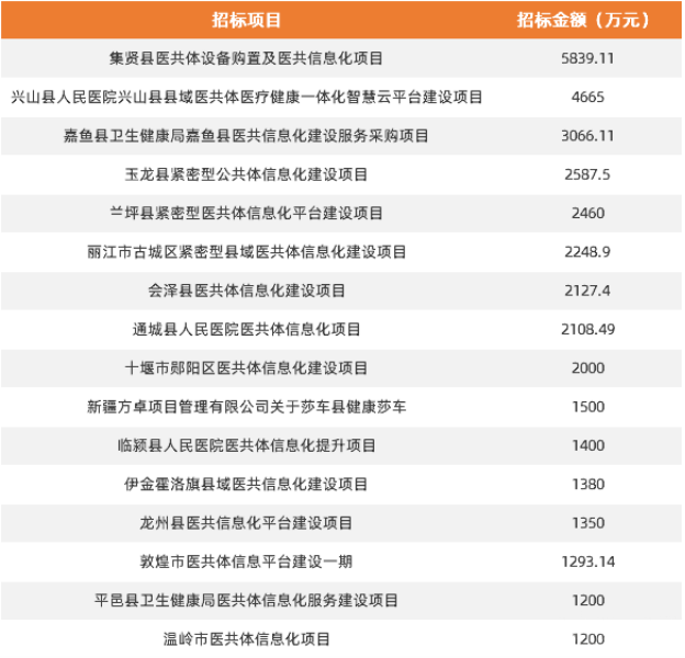 2020年4月-2021年4月医联体、医共体下新一代医院管理系统建设招标数据(部分)